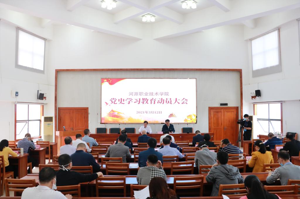 3月12日上午,我校在行政楼C108会议室召开党史学习教育动员大会,认真学习贯彻习近平总书记在中央党史学习教育动员大会上的重要讲话精神,贯彻落实全省和全省教育系统、以及全市党史学习教育动员大会精神和工作安排,动员和部署我校党史学习教育工作。学校党委书记韦荣作动员讲话,党政领导班子成员、各部门负责人、各党支部书记参加了动员大会。会议由党委副书记、校长陈德清主持。