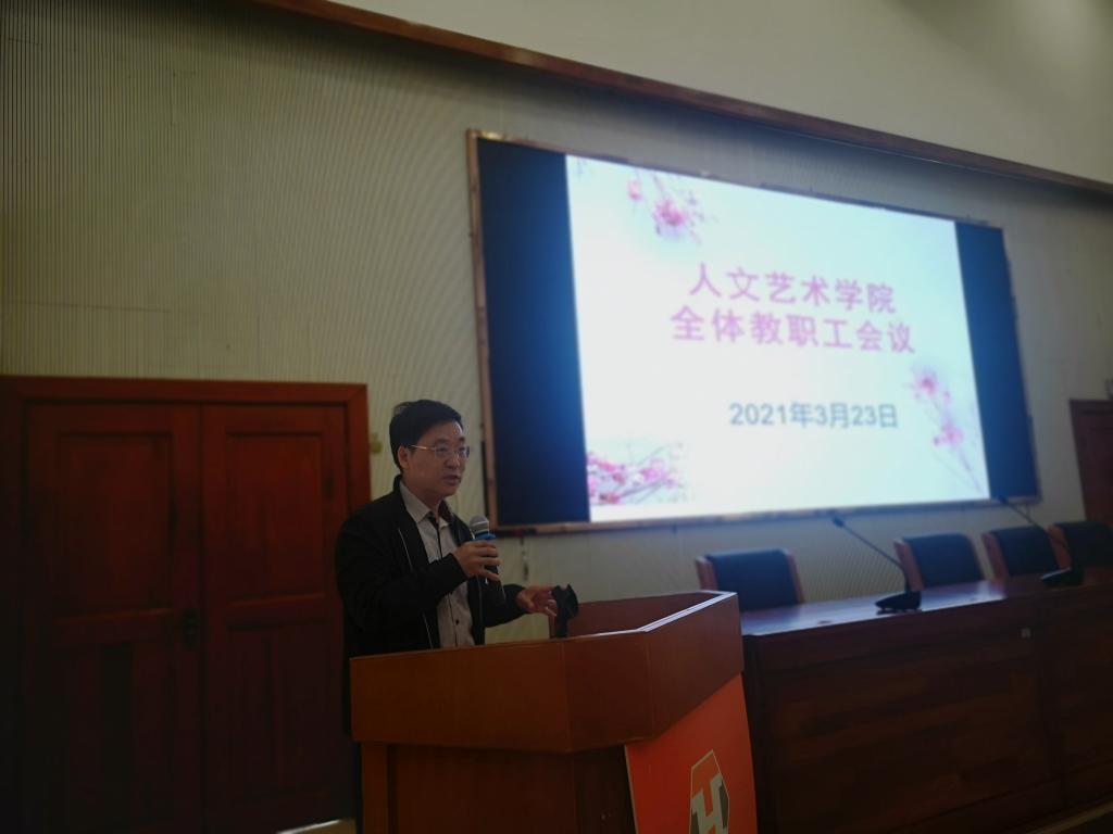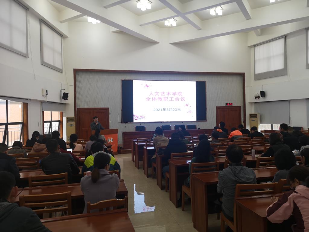 3月23日下午15:00,人文艺术学院在学校行政楼C108召开了全体教职工会议,学校王小宁副校长、人文艺术学院全体教职工参加了此次会议。