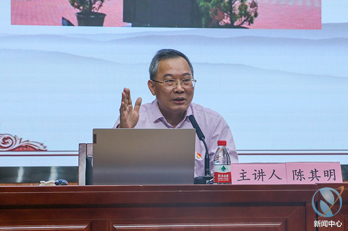 “乃纲爱儿:你的来信和你的鸡牙山的禁谕,我都收到了。我简直不知道你今年已经是十三岁,还以为是在广州兰苑住时一样童稚呢。”陈其明以《阮啸仙家书里的家国情怀》为题,通过带领师生品读家信、图说故事、观看视频、聆听音频等方式,讲述了阮啸仙的传奇人生、解读了书信里的家国情怀。
