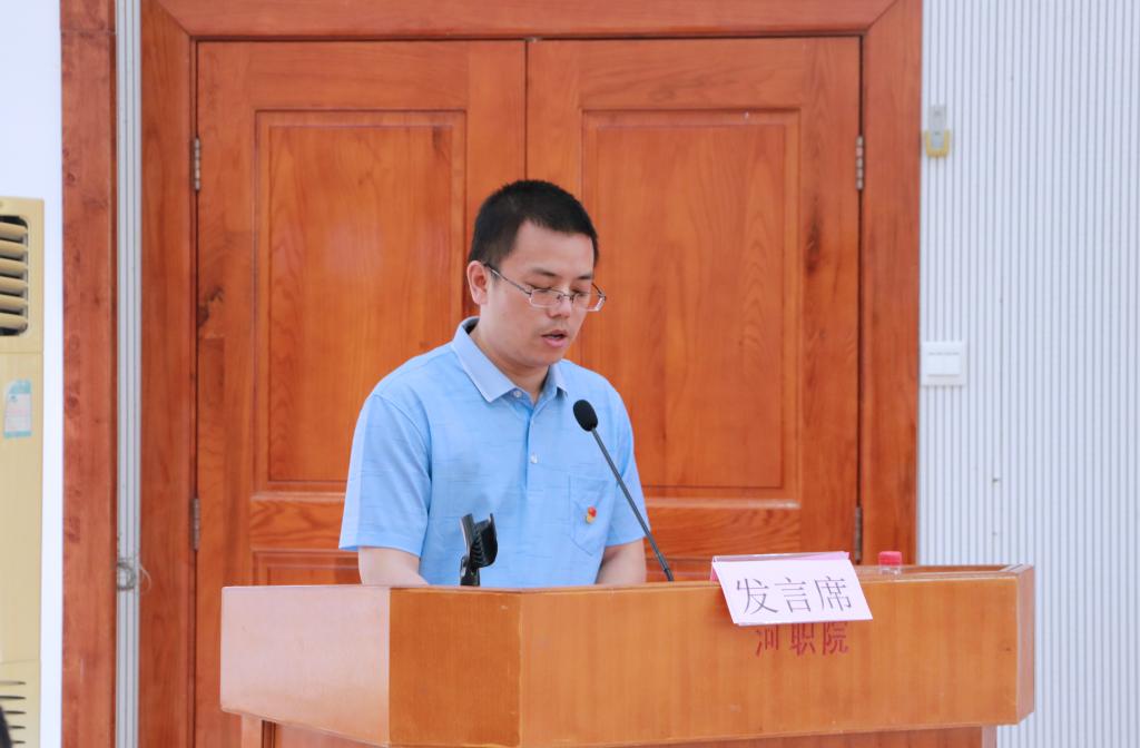 在谈及如何落实立德树人方面,宣传部赖新优部长表示立德树人必须大力提升思政课质量,必须在专业课程中要认真融入“课程思政”,必须紧扣学校实际,积极构建三全育人工作体系。要引导大学生深入延伸到履行社会责任的实践中来,将有形课程向无形课程延伸,使全方位育人横向到边、纵向到底,引导和促使学校每一方面工作都成为立德树人的大课堂,自觉把立德树人贯穿始终,努力把学生培养成高素质的技术技能人才。