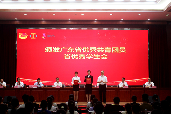 赖小景副校长为广东省优秀共青团员及省优秀学生会颁发荣誉证书