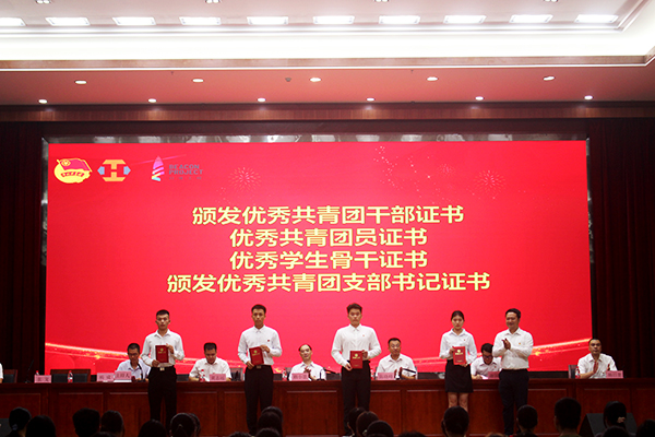 为优秀共青团员干部、优秀共青团员颁发荣誉证书