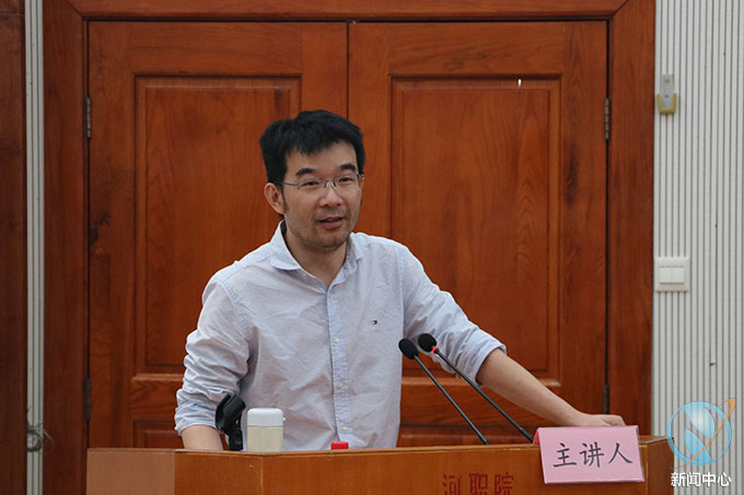 肖正兴副教授在课程建设的发展历程,发展的变化以及建课的方法方面和参会代表作了分享,诠释了为什么要建课、如何建设“金课”。讲座伊始,肖正兴副教授从农民与植物科学家的故事导入,指出在建课中首先要先了解自己,不忘初心,主动选择;要牢记“建以至用”的核心理念;要提高专业素养以及建课能力,找到属于自己的方法授课。