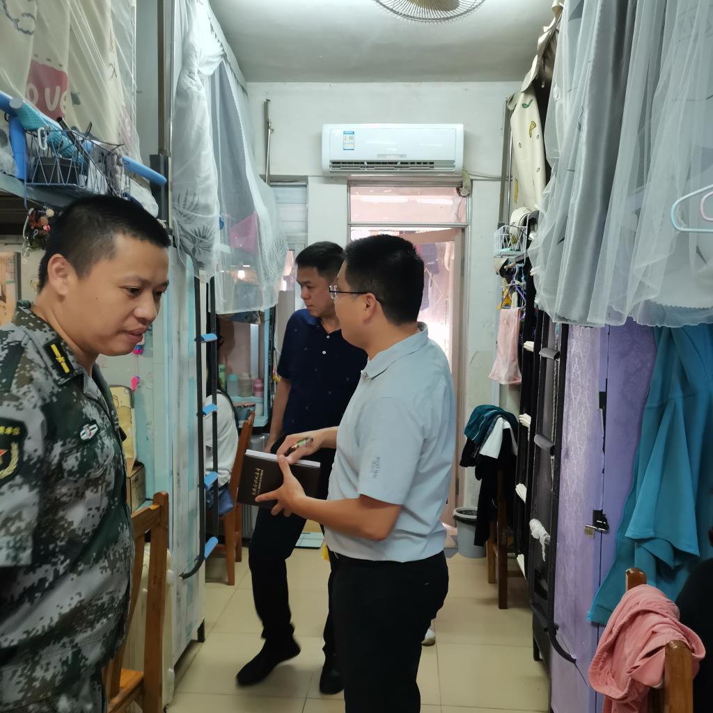 在此次安全大检查中,查看了各区各楼层疏散通道、安全出口设置是否合格及畅通;消火栓系统、消防安全疏散指示标志、应急照明灯、灭火器等消防设施和器材是否已整改完毕;物资存放是否符合标准;宿舍内是否存在违规用电等。针对检查中发现的问题,能现场整改的,已现场整改;不能现场整改的,已做好隐患登记,限期整改到位,确保将隐患消除在萌芽状态。