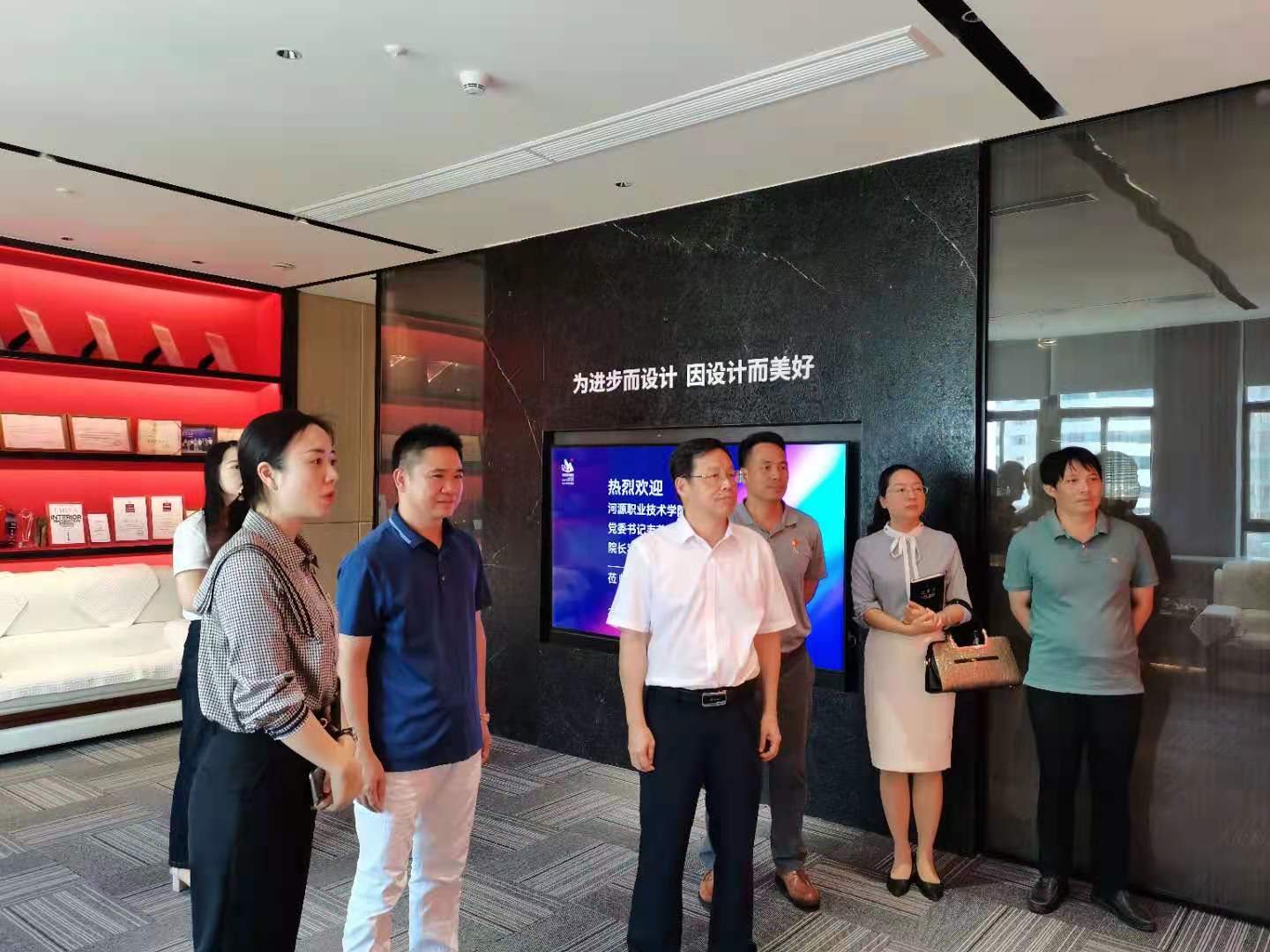 6月11日,学校党委书记韦荣、副校长袁光华率人文艺术学院院长罗春娜、副院长王方、校企合作办主任、环境艺术设计专业主任及相关辅导员,前往广东山人设计建设公司走访、检查现代学徒制学生实习情况,广东山人设计建设有限公司董事长缪国龙、执行总裁高子欣以及办公室主任等相关部门负责人接待了韦荣书记一行。