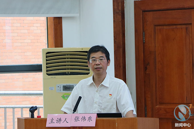 张伟东老师以“中国特色社会主义新时代变革成就史”为主题,从复兴的历史方位、必由之路、具体部署、政治保证四个问题讲授课程。他表示,新的时代包括新的实践成就和新的开创意义,新的实践成就主要体现在经济、改革、民生、外交、治党五个方面,新的历史性成就表明中国特色社会主义的发展有了一个质的飞跃,中国特色社会主义进入了新时代,展现出新的气象、新的高度、新的开创意义。张伟东老师指出,新时代实现复兴必须走中国道路,复兴的具体部署包括经济、政治、文化、社会、生态、国防军队、祖国统一和对外交往八大领域;复兴的政治保证是要加强党的建设,必须毫不动摇坚持和完善党的领导,要以政治建设为统领、以转变作风为入手,以反腐倡廉为发力、以制度建设为保障、以领导干部为关键。最后,他强调,党的一百年,是矢志践行初心使命的一百年,是筚路蓝缕奠基立业的一百年,是创造辉煌开辟未来的一百年。党团结带领人民开辟了伟大道路,建立了伟大功业,铸就了伟大精神,积累了宝贵经验,创造了中华民族发展史、人类社会进步史上令人刮目相看的奇迹,必须把党的历史学习好、总结好,把党的成功经验传承好、发扬好。