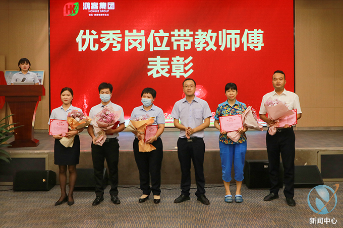鸿客集团曾金杰总裁助理、鸿客集团文旅中心景区宋军总经理、文旅研学公司总经理叶文杰、客天下景区酒店营销总监魏正强和我校韦荣书记颁发2018级河职院·客天下国家现代学徒制储备干部精2019-2021年“精英计划·爱在客天下”奖助学金;我校俞彤院长和科研处何智聪处长对2018级河职院·客天下国家现代学徒制储备干部精英班精英学徒进行表彰;鸿客集团曾金杰总裁助理、文旅研学公司总经理叶文杰和我校袁光华副校长对学徒制班2020-2021年企业第一责任导师和优秀岗位带教师傅进行表彰;随后举行“河职院·客天下国家现代学徒制储备干部精英班”的出师结业仪式,导师们与学徒们共同完成“青春不打烊、扬帆再起航”指纹画。