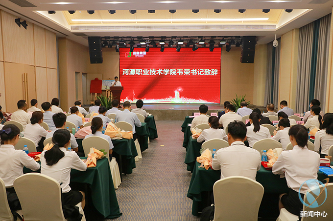 7月2日,我校于河源客天下国际旅游度假区(以下简称客天下)国际大酒店二楼水晶厅举行2018级国家现代学徒制出师典礼暨“文旅创新学院”挂牌仪式。广东鸿客实业集团有限公司(以下简称鸿客集团)总裁助理曾金杰、广东鸿客实业集团有限公司文旅中心景区总经理宋军,简称客天下相关领导,我校党委书记韦荣,副校长袁光华,科研处处长何智聪、教务处科长廖宁,工商管理学院院长俞彤,副院长张颖,酒店管理专业老师以及2018级酒店管理专业学徒制储备干部精英班学员参加此次典礼。此次典礼由客天下人事部副经理余惠生主持。