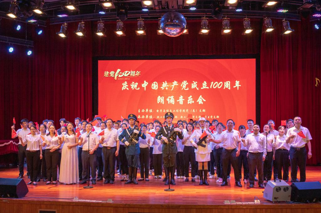 为隆重庆祝中国共产党成立100周年,回顾党的光辉历程,讴歌党的丰功伟绩,继承和发扬党的光荣传统和优良作风,进一步巩固主题教育成果,增强党组织的号召力、凝聚力和战斗力,激励广大党员坚定理想信念,发挥党组织战斗堡垒作用和党员先锋模范作用。我院党总支部于2021年7月7日在艺术演播厅开展庆祝中国共产党建党100周年朗诵音乐会。