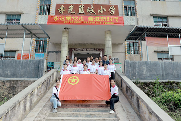 7月22日上午九点,我校“正青春”大学生推普队于河源市龙川县赤光镇蓝岐小学开展了2021年暑期“三下乡”推普助力乡村振兴专项活动的开班仪式,莅临此次开班仪式的领导和嘉宾有再乐村委书记叶兴智、大洋村村委副主任叶海雄、蓝岐小学校长叶茂坤、指导教师郑尔君老师。