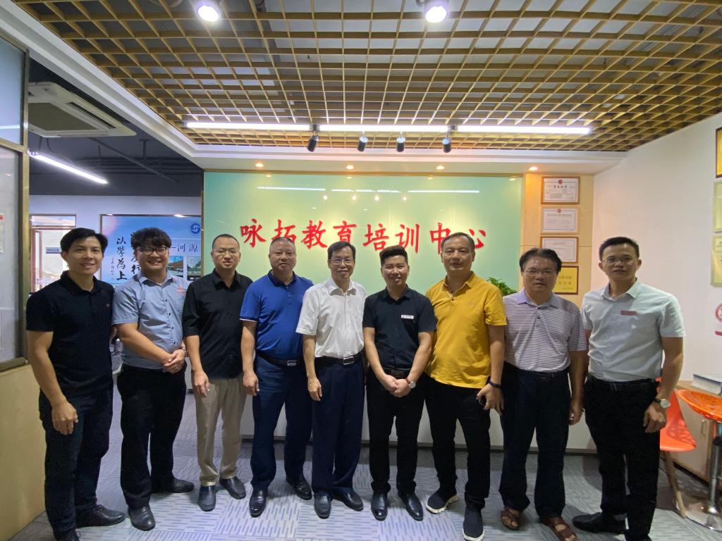 韦荣书记一行首先到达咏拓教育培训中心,该公司是经教育局批准成立、民政局备案的集成人高考、网络教育、在职研究生及职业技能培训为一体的综合性教育培训机构。公司创始人蓝善权是我校2008届模具设计与制造专业学生。座谈会上,校友蓝善权向韦荣书记一行介绍了个人成长及创业历程。咏拓教育培训中心成立于2018年4月,公司从建校初的700多学员,发展到今天4000多名在校学员。蓝善权校友对母校的栽培表示感谢,同时作为易游app入口站官网校友会机电工程学院河源分会的副会长,他向来访领导老师汇报了近几年校友工作的情况以及后续的工作计划,希望校友会在学校领导的关心支持下,在校友们的积极参与下能更上一个台阶。