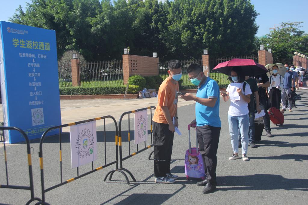 此次演练严格按照有关规定和流程设计进行,设置粤康码、行程卡核验、行李消毒等多个环节,分别模拟学生返校、学生宿舍区内晨午晚检、体温异常学生、饭堂区内就餐等应急情况的处置。