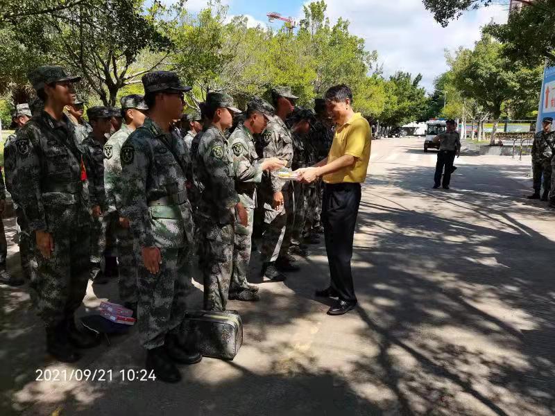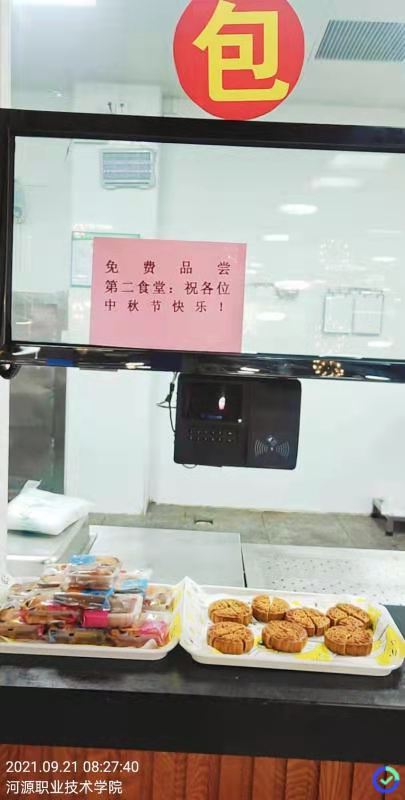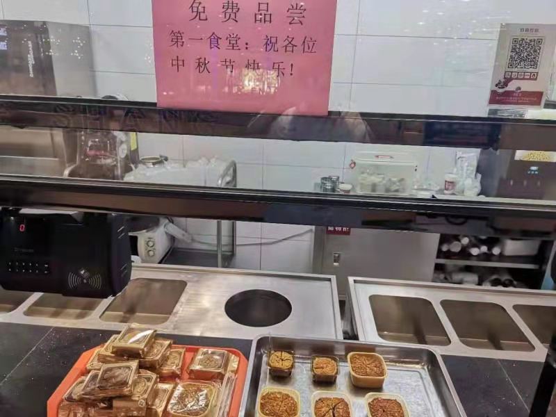 中秋假期,新生军训工作正常开展,三家食堂坚守岗位确保供餐保障工作。第一、第二食堂免费提供月饼供学生品尝,第三食堂师生服务部为全体教官免费赠送月饼送上节日祝福。