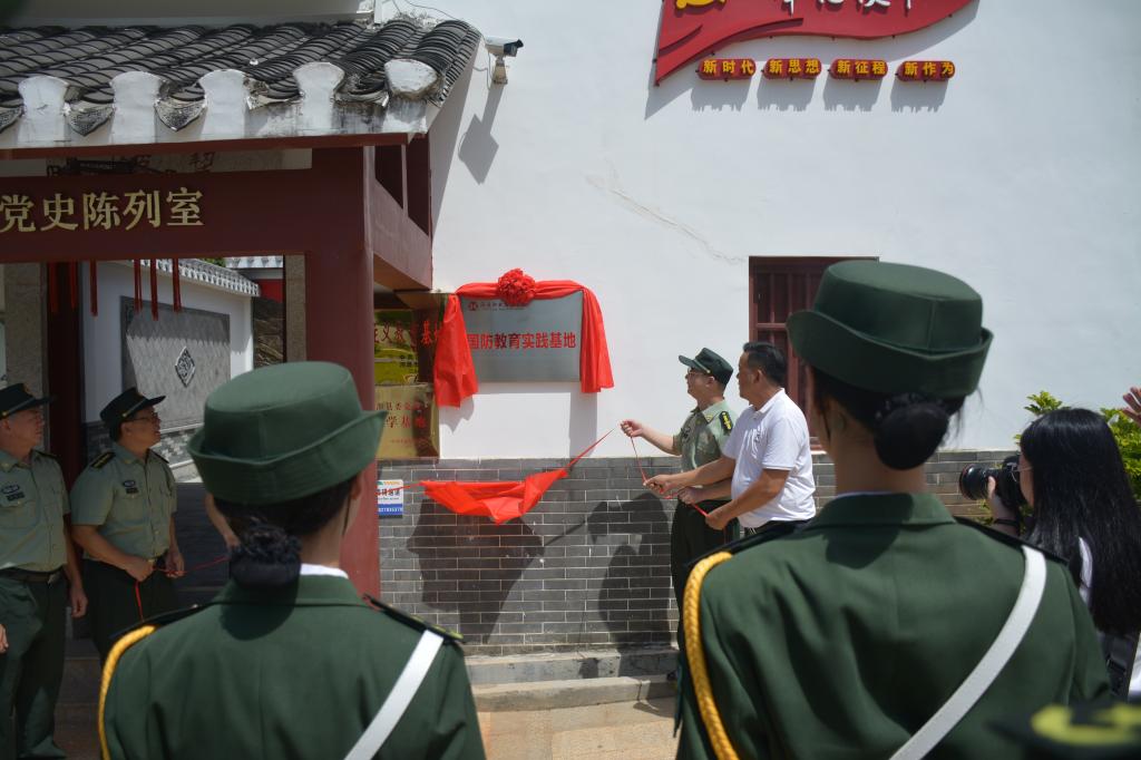 9月24日上午,易游app入口站官网国防教育实践基地在东源县船塘镇老围村挂牌,赖小景副校长率学校纪委、武装部、团委、思教部等部门领导及国旗护卫队部分队员参加了挂牌仪式。