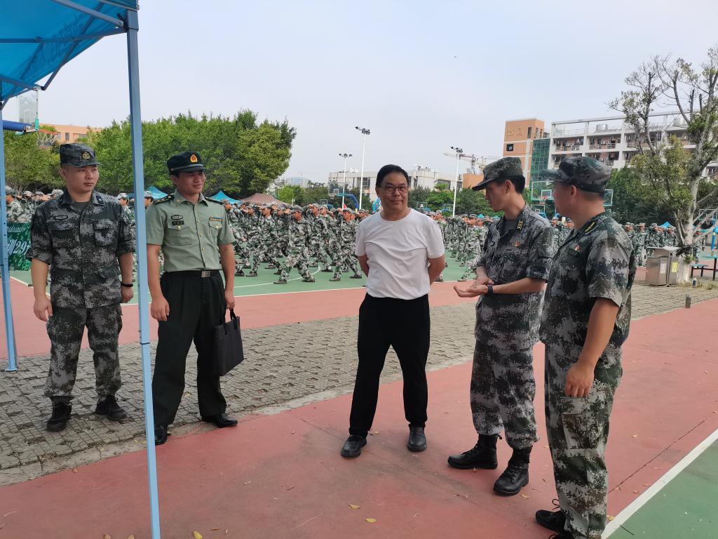9月28日,河源军分区动员处邵玮处长、中校参谋刘东宝一行莅临我校检查指导军训工作,学校武装部相关人员陪同检查。