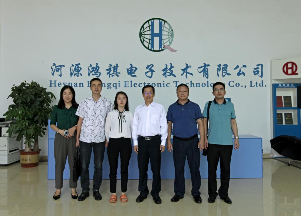 随后韦书记一行到达河源鸿祺电子技术有限公司,受到该公司周密总经理的热情接待,走访了企业现场。在座谈会上,周总详细的介绍了公司的发展状况和人才需求,非常感谢河职院的教授们自2018年就开始为公司开展协同创新和技术攻关项目等,11月份将到我校参加校招会,校企双方同时表示未来将继续深入推进校企合作。