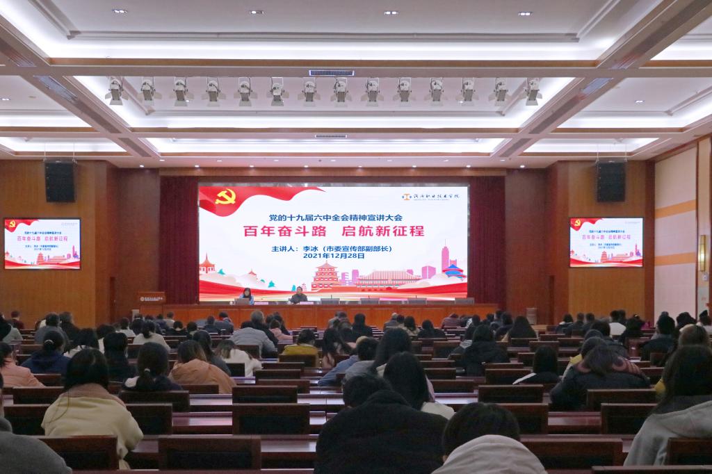 12月28日,我校于学术交流中心报告厅召开党的十九届六中全会精神宣讲大会,全体科级干部、辅导员、思政部教师、党史教育办公室成员以及部分学生代表参加本次大会。本次宣讲会由河源市委宣传部李冰副部长主讲,我校党委委员、党委宣传部赖新优部长主持。