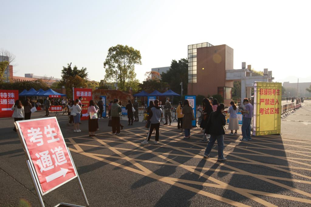 为了确保考试的公平公正,考试期间全程使用屏蔽设备,全体考生及本次考试的考务、监考人员、流动巡视员等在入场前全部进行了安检,并专设工作人员对楼层的考试秩序进行维护。