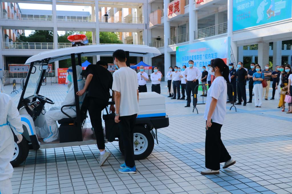 转运初筛阳性学生到临时隔离室,等待疾控人员进行现场采样和流调