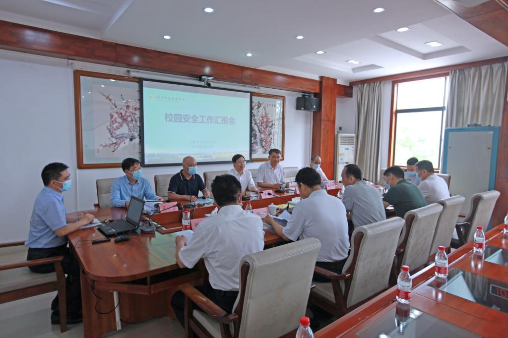 首先,陈德清校长从工作机制建设、自查整改情况、特色与亮点三个方面向督查组汇报近年来我校校园安全工作:学校党政高度重视校园安全工作,积极开展校园安全宣传教育,构建校园安全制度体系;认真做好校园安全自查整改,对消防、校舍、危化品实训(验)室等重点领域的风险隐患开展全面排查和强力整改,抓好校园常态化疫情防控、食品安全、心理健康教育、交通安全管理、防汛等各项工作,近三年来,在人防、物防、技防建设中投入600多万元;构建了校内外贯通的校园大安全工作格局,形成政校协同、校校联盟的“安全网格”,组建了退役复学军人校卫队,参与学校多项安全管理与服务工作,成为校园一道亮丽的风景线。