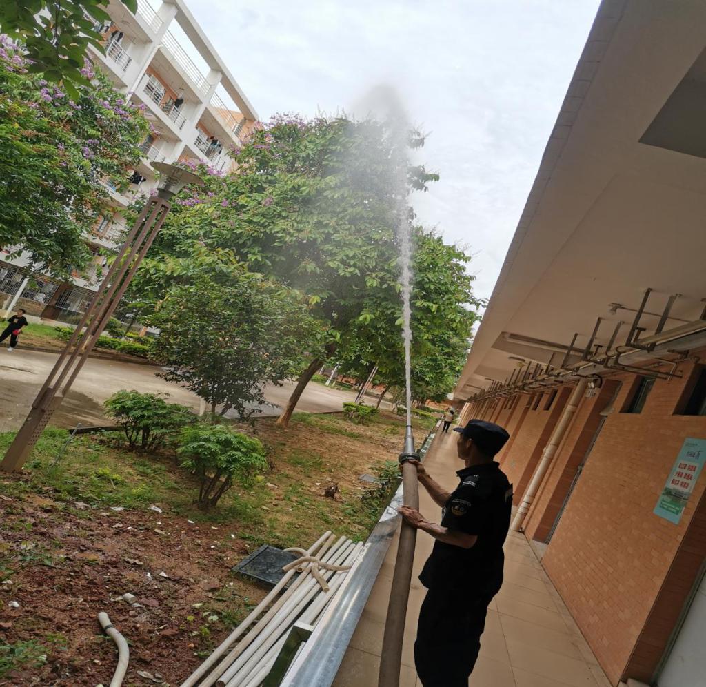 此次检查重点对学生宿舍消防设备进行检查,确保消防设备的正常使用。对消防栓逐一进行试压测试,确保水压符合消防安全规范。保卫处对部分老化设备提出了整改方案,确保学院消防安全稳定。