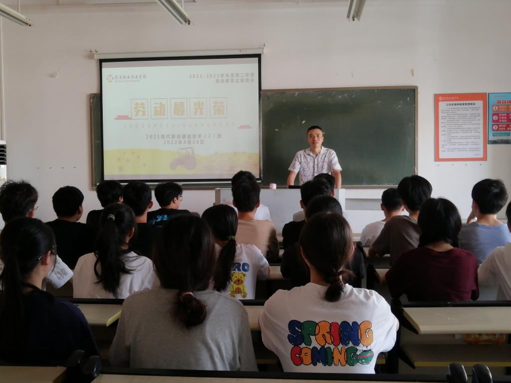在五一国际劳动节来临之际,为切实加强劳动实践教育,促进入学新生德智体美劳全面发展,充分发挥主题班会课在德育工作中的重要作用,4月28日,我校各个班级开展劳动教育主题班会。