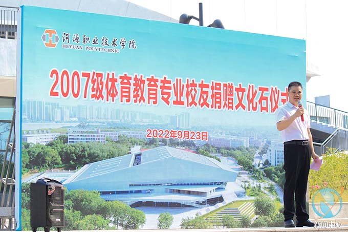 9月23日,我校2007级体育教育专业校友回到母校,向学校捐赠体育馆文化石,以此来表达对母校深深的思念之情和感恩之心。仪式在体育馆正门举行。我校党委书记韦荣、校长陈德清、相关领导和2007级体育教育专业校友代表参加此次仪式。