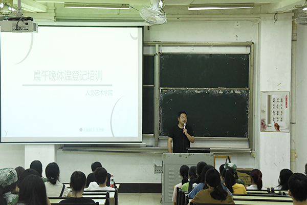 本次培训会由各二级学院团委书记主讲,主要培训内容为:晨午晚检的时间、主要内容、异常情况的处理等业务知识。同时强调晨午晚检工作是一项细致、复杂的工作,为了同学们的身体健康、为了学校的正常秩序,各班级测温员要严格按照晨午晚检要求进行工作,认真及时发现疫情隐患,做好疫情突发事件应急处置,确保师生生命安全和身体健康。