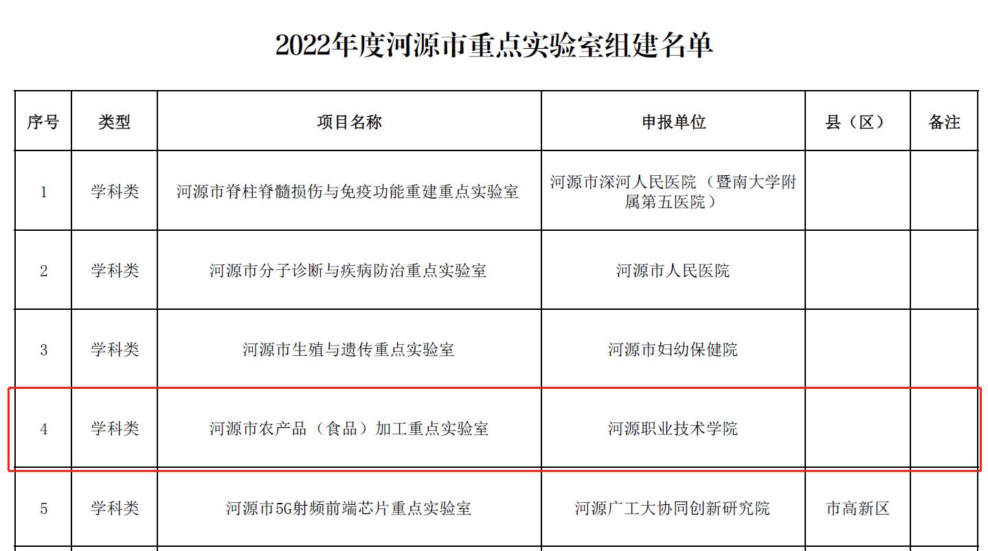 近日,河源市科学技术局发文《河源市科学技术局关于同意组建2022年度河源市重点实验室的通知》河科【2022】82号,我校食品专业主任徐艳博士主持的“河源市农产品(食品)加工重点实验室”成功获批。
