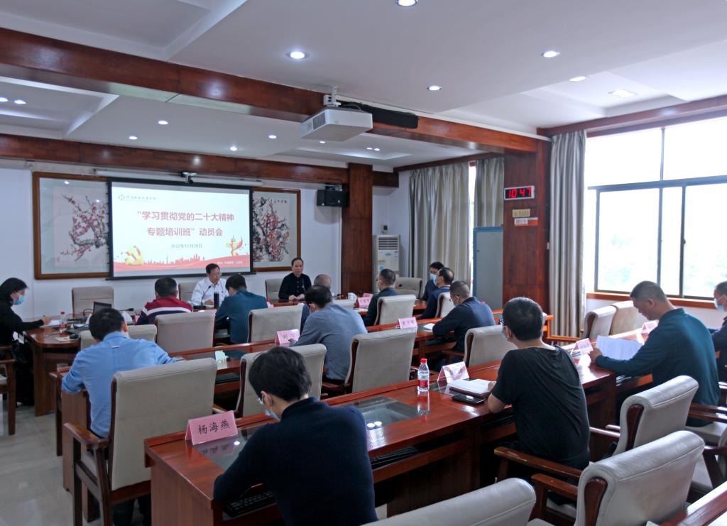为深入推进党的二十大精神学习宣传贯彻工作,引导广大党员干部更加深刻领悟党的二十大精神,推动党的二十大精神在我校落地生根、结出丰硕成果,我校于11月28-29日举办学习贯彻党的二十大精神专题学习培训班,培训对象为全校党员干部,采取领导动员、分组学习、分组研讨、集中总结等方式进行。