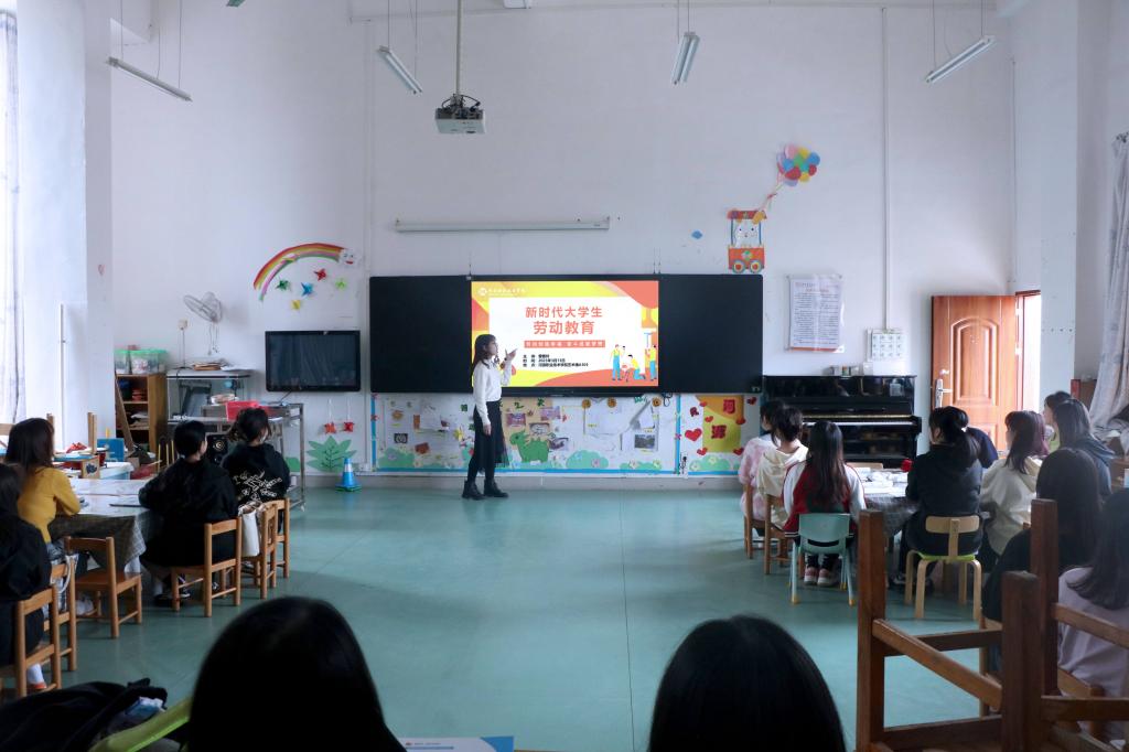 各新生班带班老师用生动形象、通俗易懂地语言向同学们讲述了劳动教育相关知识。同时对新时代劳动教育基本理念、新时代劳动教育的性质、新时代劳动教育的关键环节也进行了详细解读。曾雅婷老师告诫同学们,在未来劳动竞争中让我们获胜的不是专业的“热门”,而是我们在专业学习中积累的素养。同时以实习的设计与评价为例子,告诉同学们实习是教育活动,而非简单的劳动实践,警惕“有劳动、无教育”。
