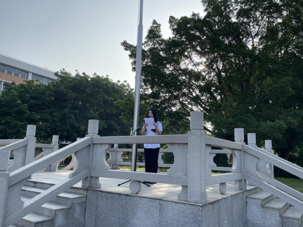 礼毕,学生代表傅善诺发表国旗下的讲话,她向我们阐释了国家安全观的相关概念,指出维护国家安全就是维护全国各族人民的根本利益,并希望学生们能够主动学习国家安全知识,共同捍卫国家安全。