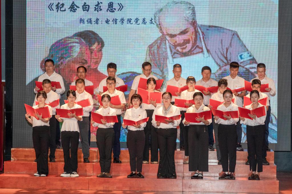 开幕式后,24组各部门、二级学院师生代表以“思·颂”为主题,声情并茂演绎了毛泽东众多诗词作品。热情洋溢的朗诵表达了师生们对伟大领袖毛主席的怀念之情和深深敬意,激励了学生民族精神和爱国主义情怀,营造了高雅、积极的校园文化氛围。