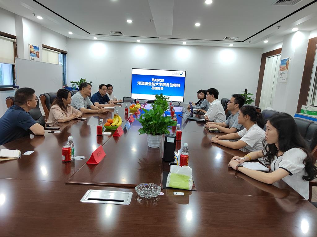 在中南教育科技(深圳)有限公司、深圳市鹏程产教融合服务有限公司、华为机器有限公司,陈德清校长在座谈会上首先介绍了学校情况和校企合作联合育人的三种模式,感谢公司对河职院学生实习就业工作的大力支持,此次访企拓岗促就业不仅是为毕业生就业畅通渠道,也实地了解企业需求,希望双方在教育教学、人才培养等方面开展深度合作,实现毕业生高质量就业和公司高质量人才需求双赢。其次对毕业实习的学生提出要求,要爱企爱岗敬业,勤学苦练、深入钻研、勇于创新,培育和弘扬工匠精神。