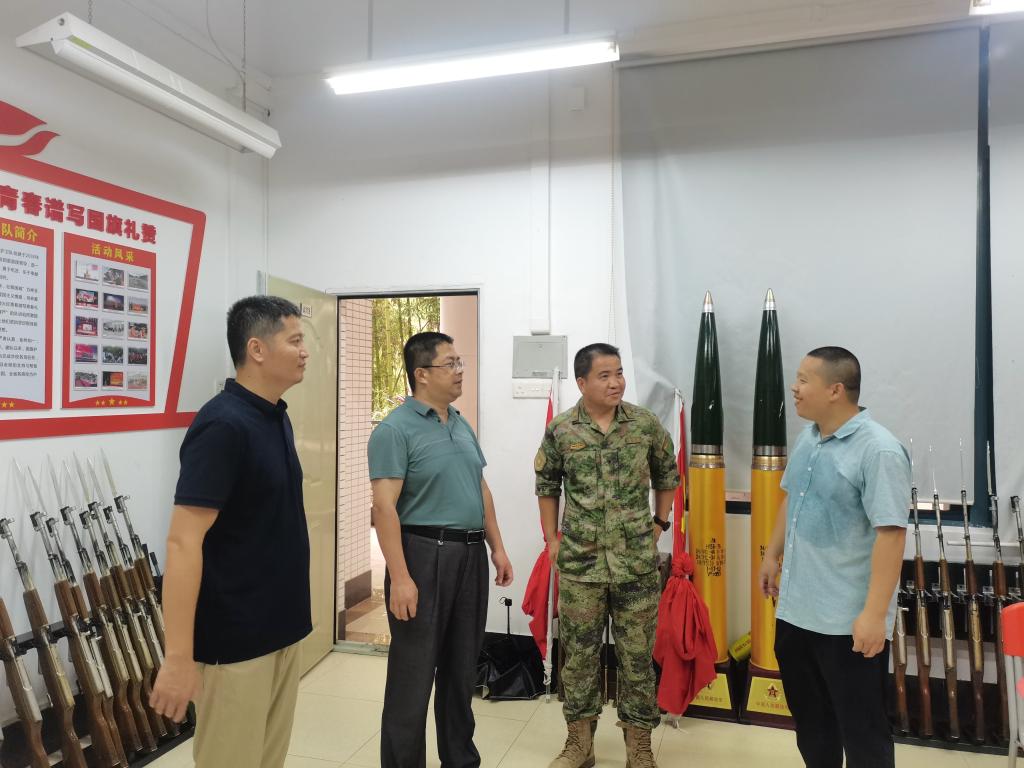 为深入了解高校征兵工作的好经验、好做法,兵员储备工作上的好模式、好方法,2023年6月14日上午,河源军分区动员处副处级参谋庞兴盛来我校调研征兵工作开展和兵源预征预储工作落实情况。学校武装部邓伟昌部长、学校武装部相关人员参加调研交流会。