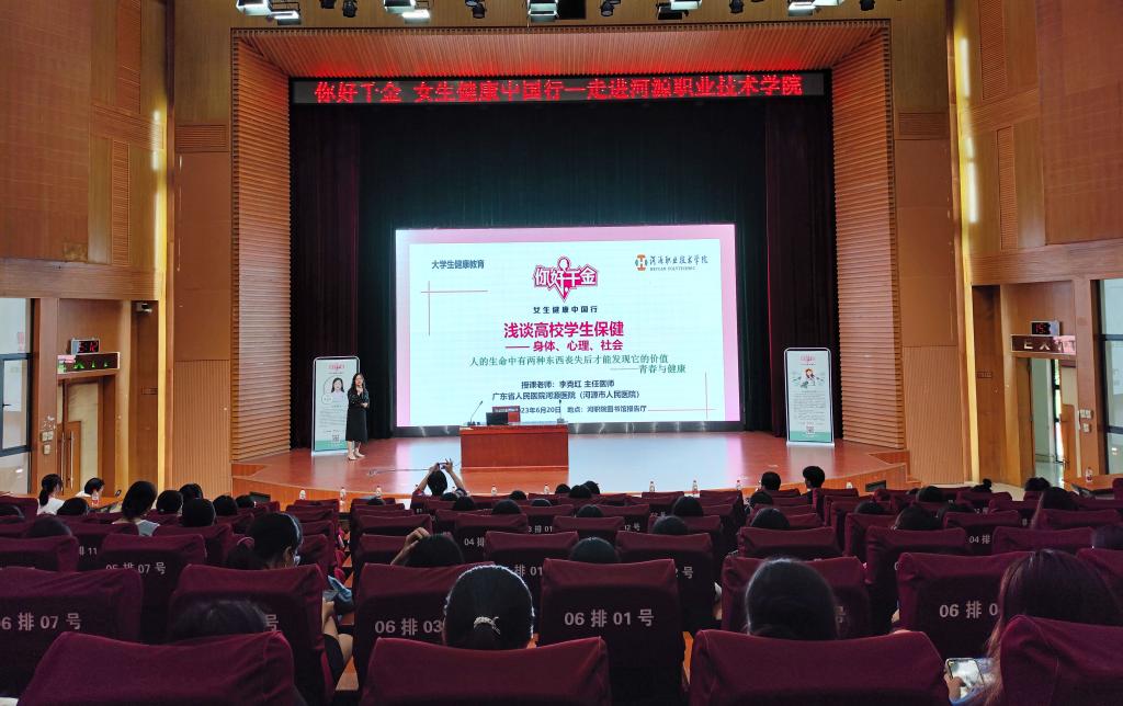 为进一步关爱同学们的身心健康,提高女性自我保健意识及疾病防治能力。2023年6月20日,学校工会组织的“你好 千金”大学生健康教育主题讲座在图书馆报告厅隆重举行。广东省人民医院河源医院主任医师李克红医生受邀为我校同学讲授女生健康知识。