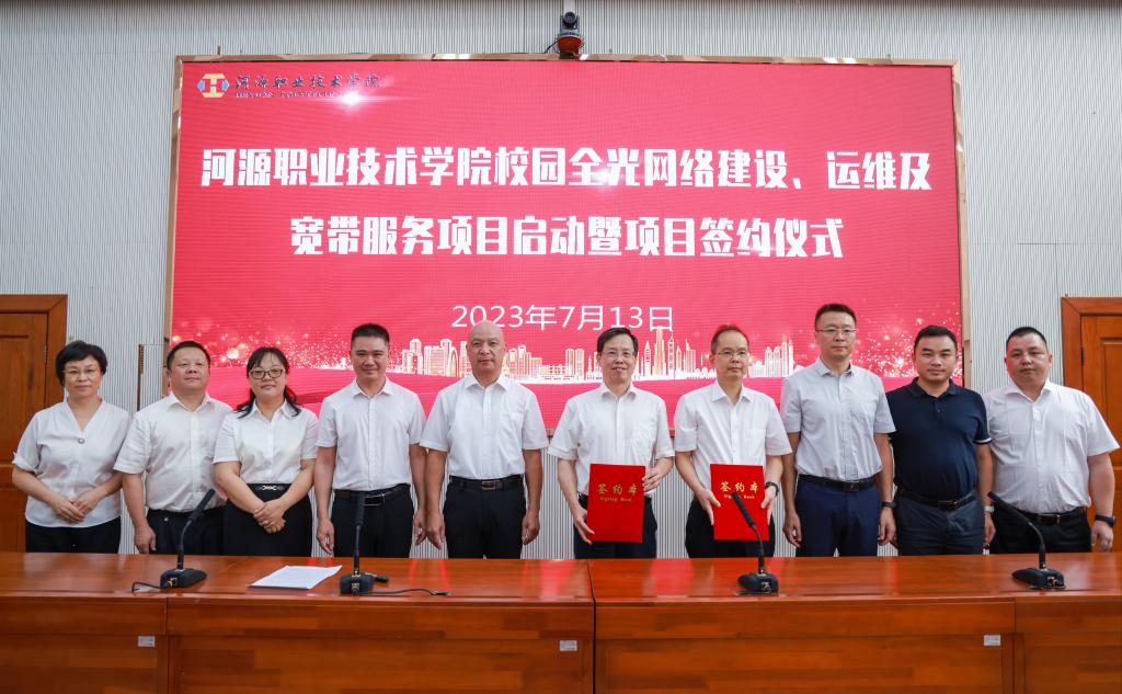会上,河源移动、华为公司及我校代表分别对新一轮校园网建设项目、全光网络建设、校本数据中心及智慧校园升级改造项目进行了介绍和汇报。河源移动表示全光网以及智慧校园将建设为河职院未来8年信息化发展的数字底座,助力学校“双高校”建设,推动打造成粤东西北的标杆院校。华为公司表示要打造河职院数字化转型的“光”速公路,开启河源全光建设的新时代。我校表示校本数据中心将成为学校智慧校园的智慧大脑,为师生带来全新的智慧校园体验,赋能学校办学提质升级,实现学校“双高校”信息化的建设任务,推进学校教育治理体系和治理能力现代化。