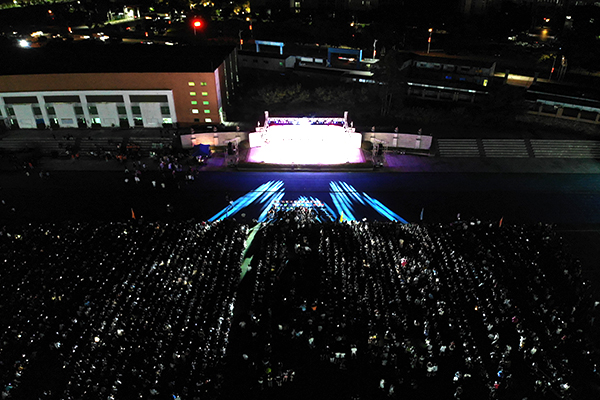 秋高气爽、凉风习习。9月26日晚,我校在足球场隆重举行第十八届文体艺术节暨迎新生文艺晚会。出席本次活动的有我校党委书记韦荣,党委副书记叶国英,副校长王小宁、袁光华、姚家芳,相关部门负责人和全体2023届新生。