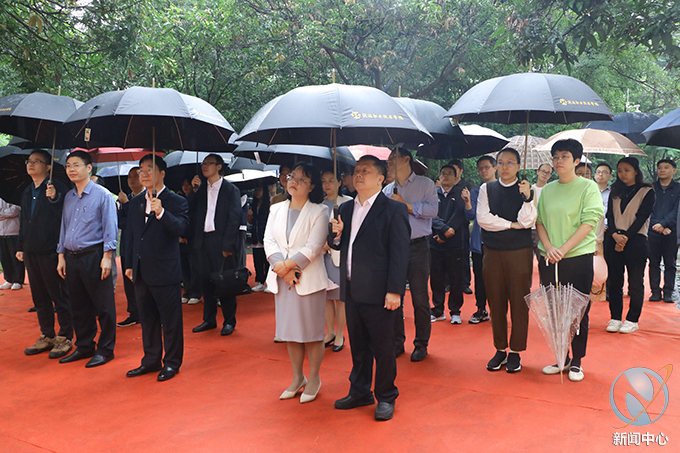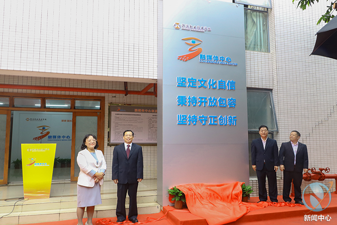 随后,韦荣书记、王小宁副校长、姚家芳副校长和党委宣传部部长赖新优等领导共同为融媒体中心揭牌。