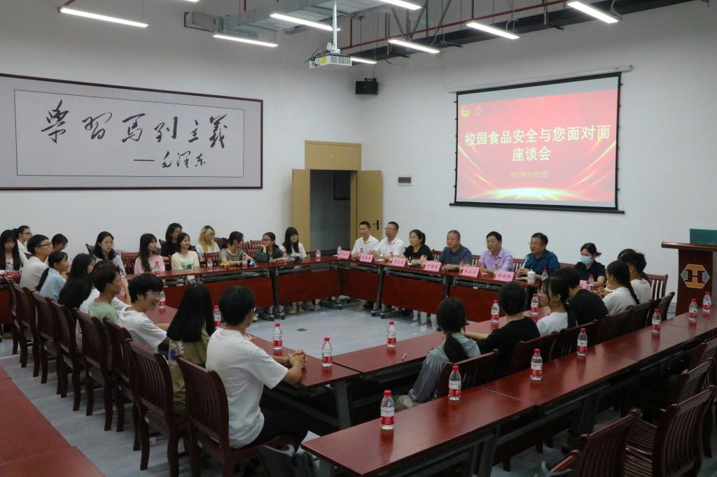 为提升食堂管理效能和服务质量,有效畅通学生监督反馈渠道,加强食堂管理工作、提高饮食服务水平。11月2日下午,我校于体育馆T116举办“食品安全与您面对面”座谈会,学校副校长王小宁、校团委书记陈晓峰、资产后勤处处长、团委相关负责人,学校食堂管理人员及各学院学生代表参加了会议。