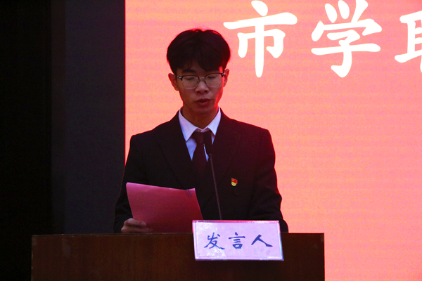 市学联主席李佳帆发言