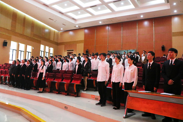 大会的最后,团委陈晓峰书记作讲话,他向学生代表和全体学生骨干们提出三点期望:第一、要思想过硬,素质过硬,怀揣初心,坚定理想信念;第二、在工作中善于思考,勤于总结,勇于创新,敢于思考;第三、要平衡好学习与工作,在各个方面树立模范意识,同时勉励学生骨干们要秉承习近平总书记系列重要讲话精神、全国学联二十七大精神,要有乘风破浪会有时的决心、不到长城非好汉的作风,带领广大同学绽放青春光彩。最后,大会在激情昂扬的团歌声中落下帷幕。