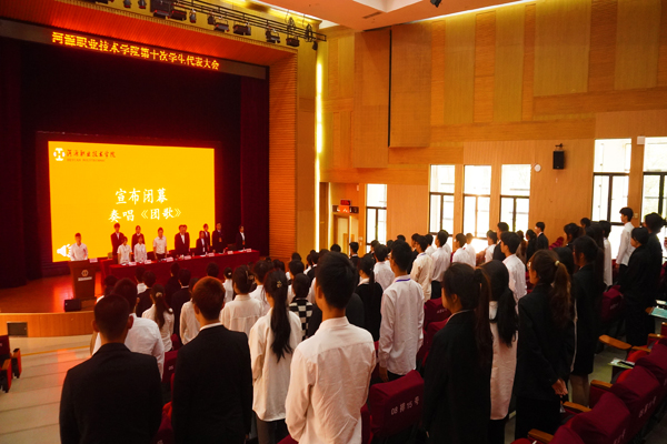 在正式会议阶段,林洋同学代表第九届学生会作了题为《担当时代使命 谱写奋斗华章 团结带领广大同学为争创高水平职业技术院校贡献青春力量》的工作报告。报告全面回顾了上次学代会以来,我校学生会工作取得的成绩和经验,并对学生会在新时期里的奋斗目标和工作规划进行了汇报。谢铭烟同学代表第九届学生会作了权益工作报告。