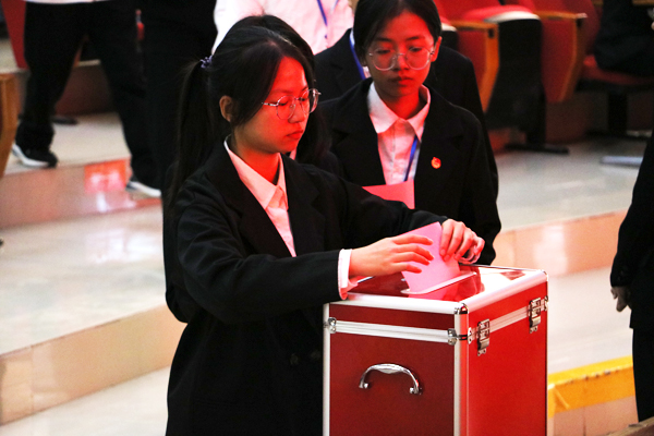 在大会的选举环节,全体正式代表通过无记名投票的方式选举产生了新一届学生会主席团和常任代表委员会。陈思敏、林洋、侯文杰、谢汐彤、谢铭烟当选第十届学生会主席团成员;方海林、尹琦彤、刘莎、张盈、林娜娜、郑纬键、练梦瑾、侯文杰、谢晨为新一届常任代表委员。之后,全体正式代表表决通过了《易游app入口站官网学生会第九届委员会工作报告的决议》等一系列文件。