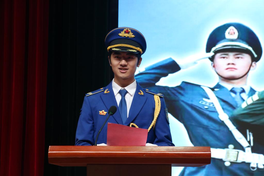 热血沸腾的宣誓将活动推向高潮,紧接着,国旗护卫队卸任大队长杨朝弘上台发言,他表示,国旗护卫队所获得的成绩离不开学校各位领导老师的支持和队员们的团结一致,并希望新队员们同样能以积极饱满的热情,投入到爱国、护旗的工作中去,让队伍再续辉煌,再创佳绩。随后,国旗护卫队新任大队长陈思敏上台发言,她表示将继续带领国旗护卫队不断发扬不怕苦不怕累的优良传统。加强队员们的思想观念与作风建设,以“求真,务实,开拓,创优”的奋斗精神建设出一支学校放心、老师满意、作风优良、本领过硬的优秀队伍,以饱满的状态书写国旗护卫队未来的新篇章。