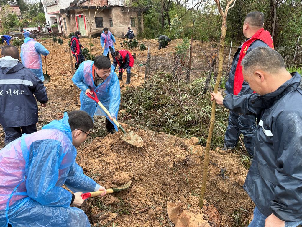 随后,我校党员同志与龙川县赤光镇瑶坑村党员干部群众共同开展植树活动。
