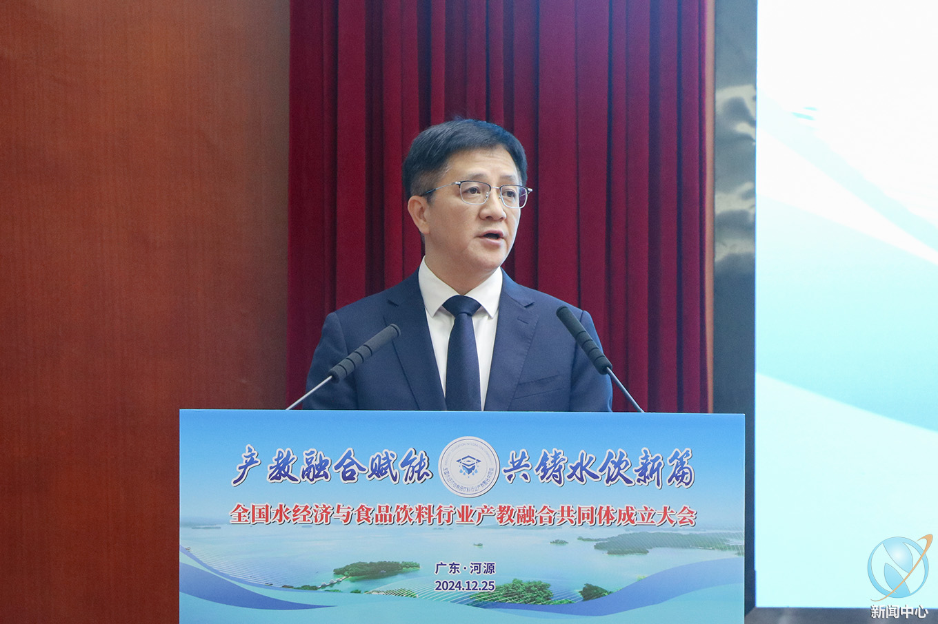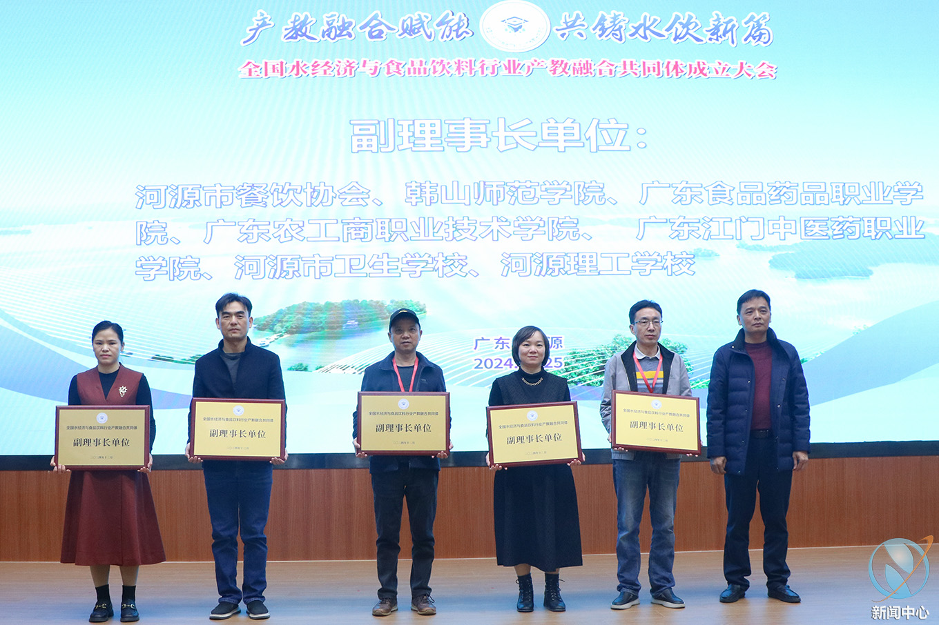 为进一步深化产教融合,促进教育链、人才链与产业链、创新链有机衔接,推动教育优先发展、人才引领发展、产业创新发展,12月25日,全国水经济与食品饮料行业产教融合共同体(以下简称“共同体”)成立大会在我校举行。河源市副市长谢春艳,相关市直部门领导,北京大学冯科教授、栾胜基教授、田伟教授,共同体成员单位代表,我校党委书记韦荣,党委副书记、校长刘贻新等出席会议。