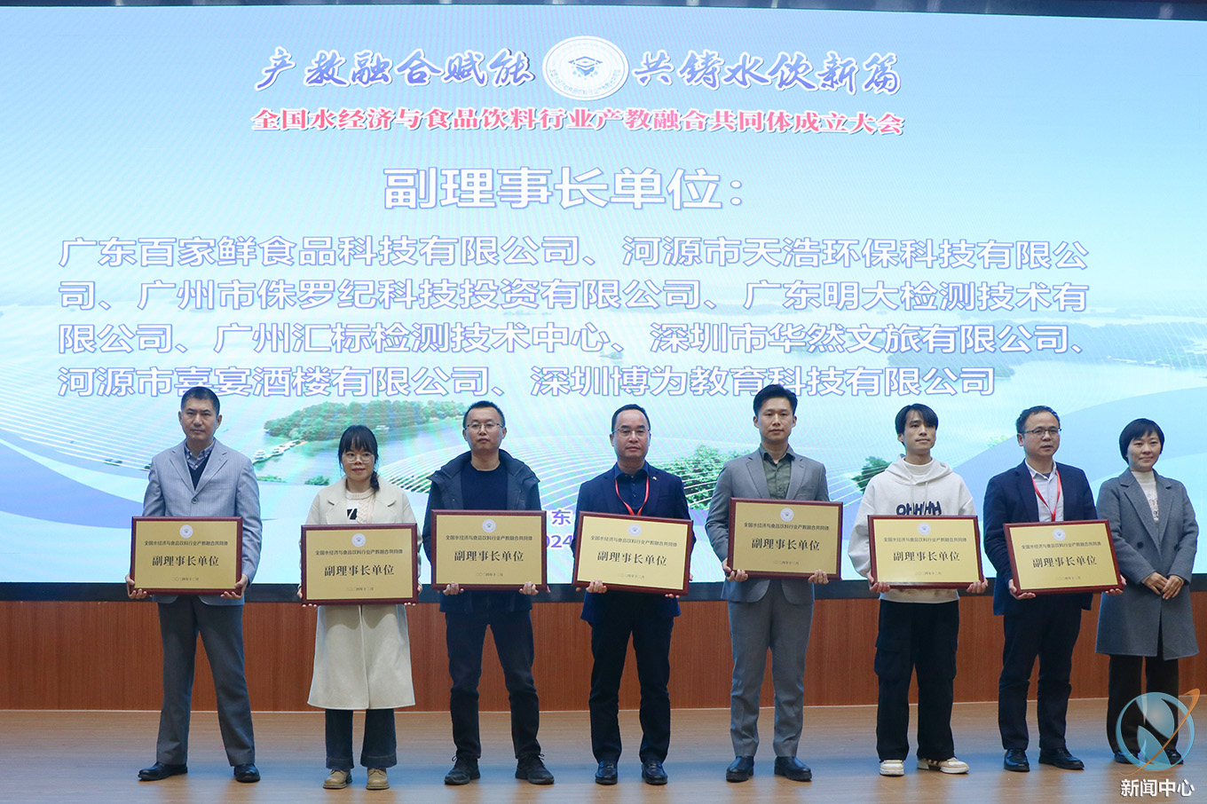 在共同体成员大会上,审议通过了《全国水经济与食品饮料行业产教融合共同体章程》,并宣布了理事长单位、常务副理事长单位和副理事长单位名单并授牌。