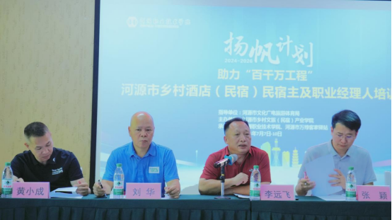 7月7日至10日,由河源市文化广电旅游体育局指导,易游app入口站官网、河源市乡村文旅(民宿)产业学院主办的“扬帆计划”助力“百千万工程”——河源市乡村酒店(民宿)主人及职业经理人培训班顺利举办。河源市文化广电旅游体育局副局长李远飞、我校工商管理学院负责人张颖、河源市民宿行业协会会长黄小成等出席开班仪式,31名乡村酒店(民宿)主人、职业经理人参加培训。