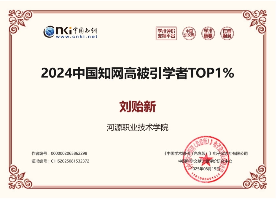 “2024中国知网高被引学者”评选活动由中国知网中国科学文献计量评价研究中心组织开展,旨在客观、科学地衡量学者近十年来的学术成果及其影响力。评选基于中国知网收录的国内学术成果,通过定量数据统计、遴选方案评审及学科专家调研等多环节严格筛选,最终形成预发布名单。